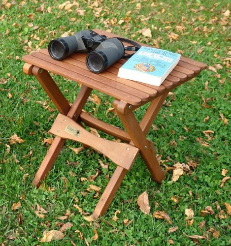 Was looking for a nice small wood table for my deck/porch on my condo to match my new stained adirondack chairs. This fit the bill perfectly and is very nice to look at. It's big enough for a nice plate of food and a couple of drinks and folds up nicely if you need to take it places. It's outside all the time, holds up in the train fine, but the sun has started to fade it only slightly, might have to re-stain it in a year or two with high quality stain, no big deal. Really completes the deck!