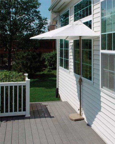 I have a very narrow balcony that gets a lot of direct sunlight. All the umbrellas sold in stores are round or rectangular, and would hang over the balcony. This half umbrella is the perfect solution. It butts up right against the wall. No overhang. It's easy to crank open and closed. I bought the super heavy base too. Gotta have both.