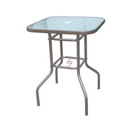 Woodfield TGS47IB High Bar Table 30" x 30" has a bronze powder coated frame with a water wave glass tabletop. The high bar table is perfect for serving drinks and snacks on a patio or outdoor living space. Adds a sleek, modern touch to outdoor décor. Dimensions 30" x 30" x 38".