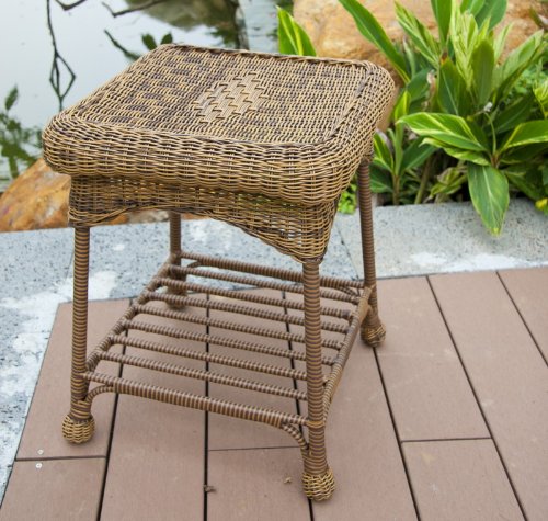 The Outdoor Wicker End Table is a nice complementary piece for your patio set, and it's also a nice accent piece indoors. This end table looks great with our outdoor wicker chairs and loveseats. Although it displays the classic beauty of natural wicker, the table is actually hand woven, all-weather resin wicker with a sturdy steel frame. You can leave this piece out year round and it won't deteriorate. A wonderful addition to any patio grouping.