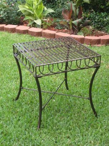 This wrought iron side table is perfect for decks, patios and lawns, providing a place to rest a drink or book of choice! The hammered bronze finish is complemented by a slatted table top and looped sides. Sturdy and reliable, this outdoor end table is perfect for outdoor entertaining. Matching Wrought Iron Patio Furniture Set available. Assembly level/degree of difficulty: Easy.