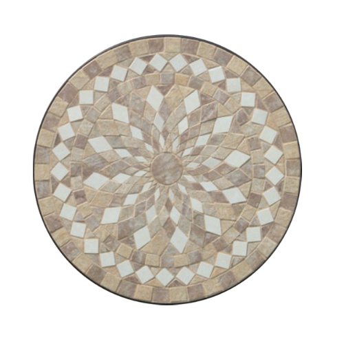 - Beautiful mosaic pattern table top design with an inlaid powder coated iron tray