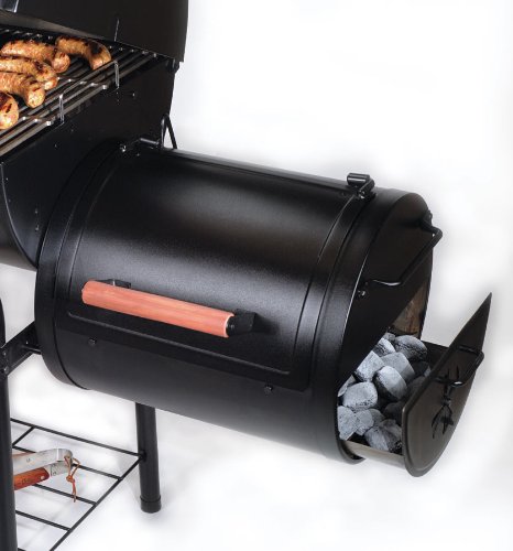 - Char-Griller 2424 side fire box offers indirect heat while providing savory smoked flavors