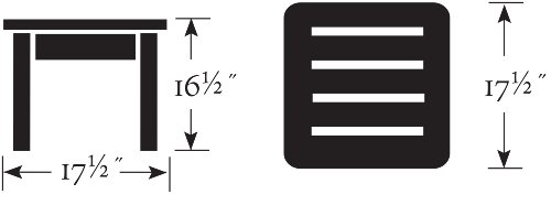 - 17 1/2 inches long, 17 1/2 inches deep and 16 1/2 inches high