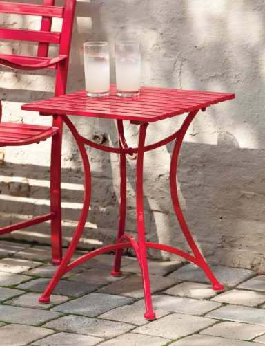 Add a pop of color to your outdoor space with this classic metal side table dressed up with a splash of vibrant red. Perfect for holding that glass of lemonade, that book you've been meaning to get to, or perhaps that sunhat for when you'd like to have some shade, this table is the perfect complement to any outdoor space. It pairs handsomely with our Red Metal Garden Bench.